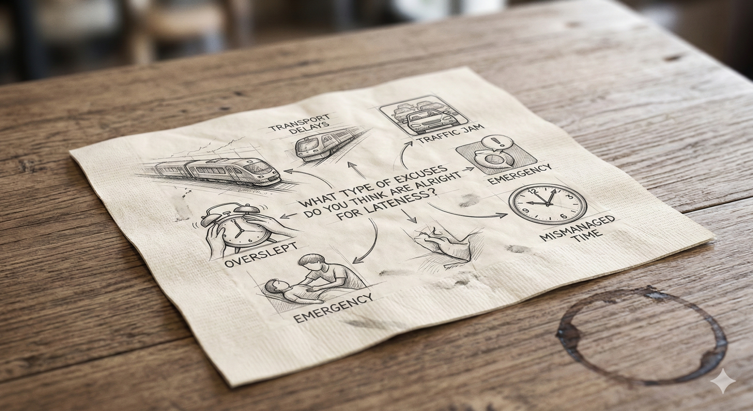 3 – What type of excuses do you think are alright for lateness?